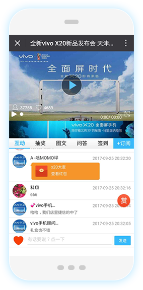 观众通过H5页面观看直播,同时群聊互动,真正的“移动互动直播”。