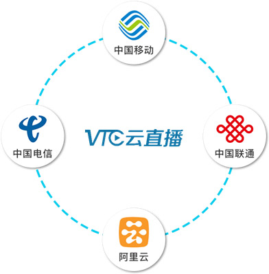 VTC云直播承载平台: 基于三大电信运营商混合组网的多节点流媒体服务器(VCDN),独享带宽,稳定可靠,解决了跨运营商网络手机看直播的卡顿现象。